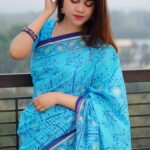প্রিমিয়াম চান্দেরি সিল্ক ডিজিটাল প্রিন্ট শাড়ি + ব্লাউজ পিচ DPS-10